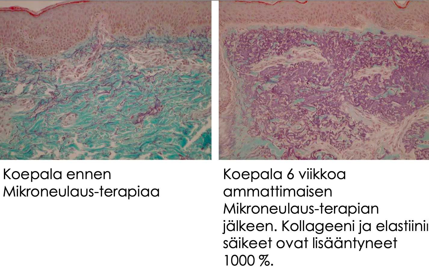 • Mikroneulaus vaikuttaa ihossa 1mm alueella 100%. Tällä alueella solujen jakautumin
